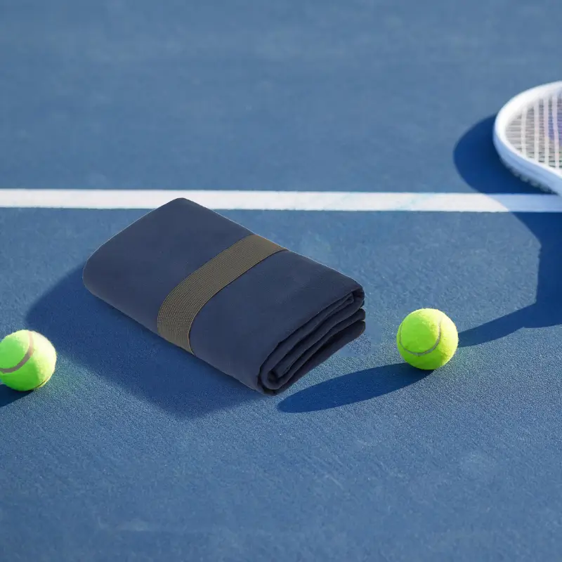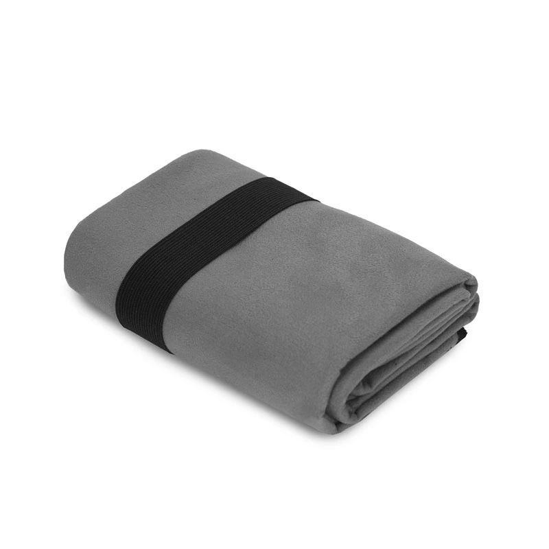 Toallón de microfibra de secado rápido y máxima absorción. Puntas redondeadas y elástico combinado para optimizar su guardado. Medida: 130 x 80 Cm.
