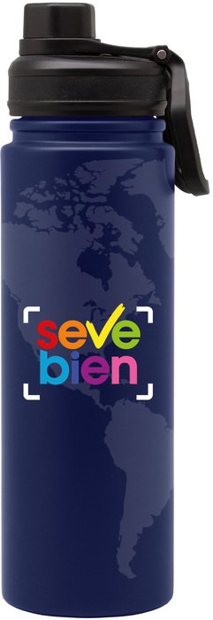 - Características: Botella doble pared, sellada al vacío. Interior en acero 304 y exterior en acero 201.