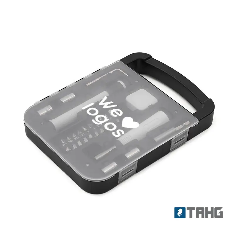 Consigue el Set de Herramientas Solution personalizado con el logo de tu empresa. Incluye llave allen, linterna, metro extensible y destornillador de puntas intercambiables. ¡Orden y funcionalidad en un solo maletín! TAHG