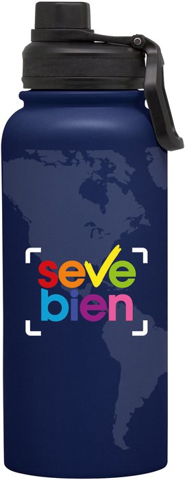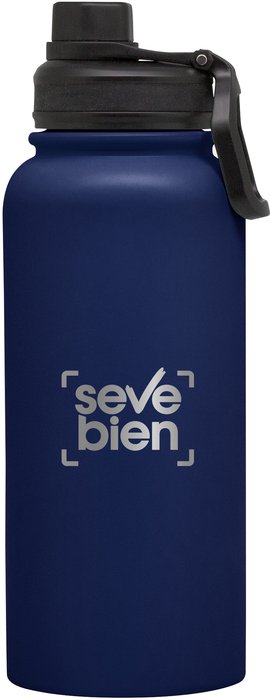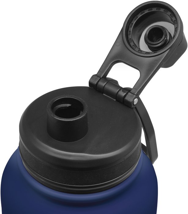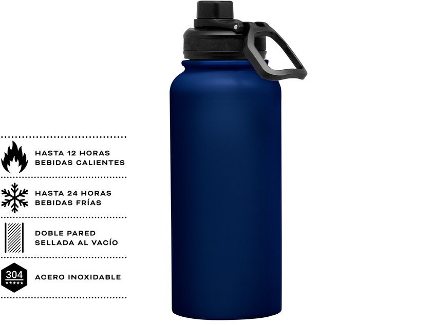 Descripción: Botella deportiva doble pared, sellada al vacío. Interior en acero 304, exterior en acero 201. Tapa con anillo de silicona, boquilla con cierre a rosca antiderrame y manija plástica para su agarre. ♻️