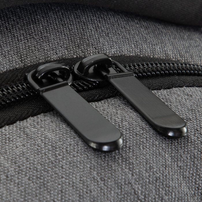 Mochila urbana portanotebook de hasta 16 pulgadas. Compartimento principal con cierre, interior con 2 bolsillos, bolsillo porta notebook acolchado y elástico de seguridad y bolsillo porta tablet de hasta 11 pulgadas. Compartimento frontal con cierre, exterior con cierre horizontal, interior con bolsillos organizadores. 2 bolsillos laterales de tela elastizada color negro. 2 correas de hebillas ajustables al volúmen que se traslade. Asa acolchada y reforzada. Espalda acolchada con red que permite ventilación. Tiradores de cierre metálicos.