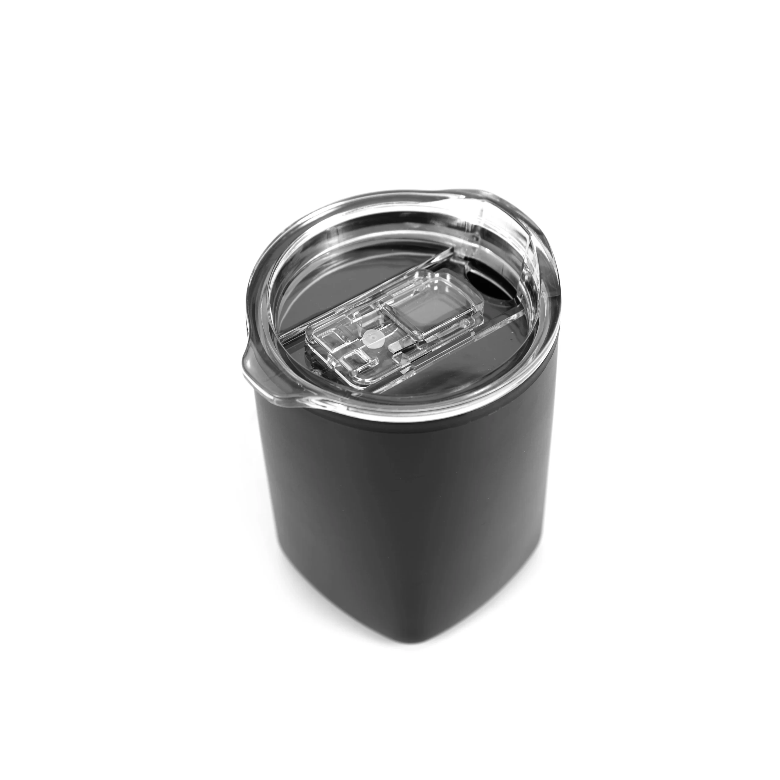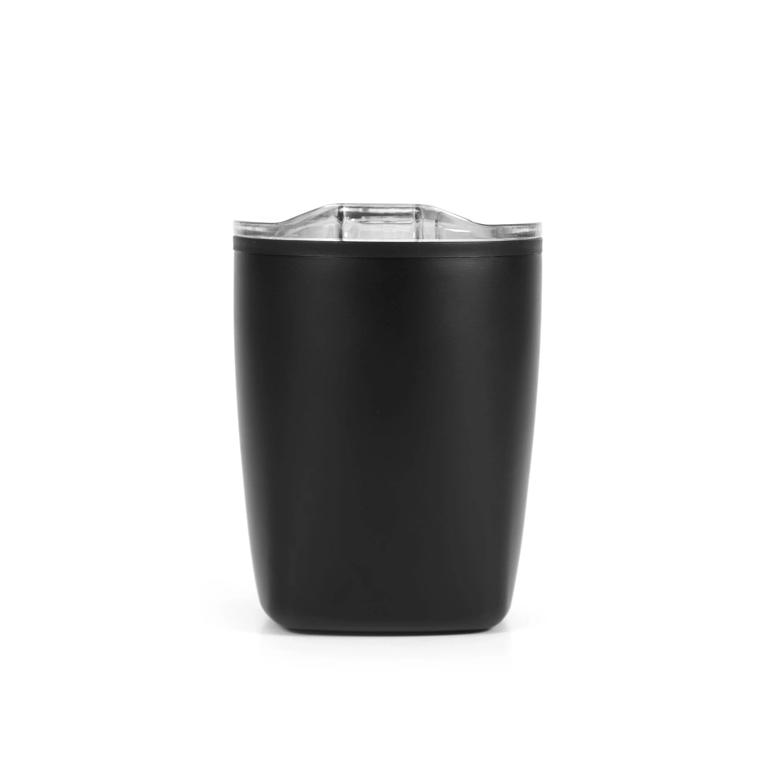 Mug térmico realizado en acero inoxidable en su exterior, y polipropileno de color negro en su interior, con tapa transparente cristal clear con cierre y base antideslizante. Medidas: 11 cm x Diámetro 9 cm. Capacidad: 350 ml. .