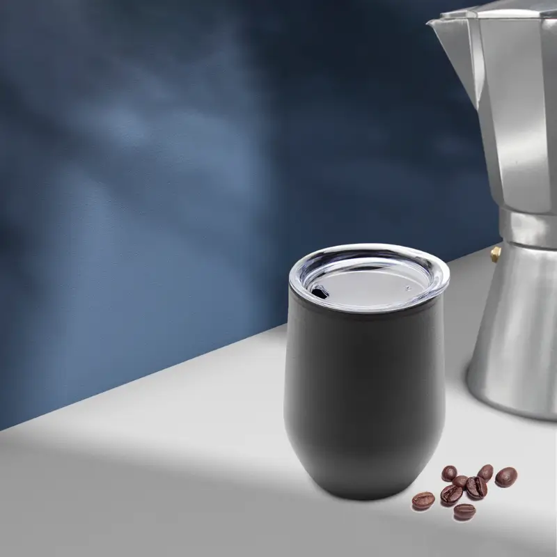 Regala a tus clientes y empleados un Mug Zeit personalizado, perfecto para su día a día. Este mug térmico está hecho de acero inoxidable y esmaltado en su exterior, con interior de polipropileno negro y tapa cristal clear, lo que lo hace libre de BPA. Tiene una capacidad de 400 ml y viene con una Gift Box confeccionada en cartulina Kraft. ¡Compra ahora y sorprende a todos con un regalo práctico y elegante!